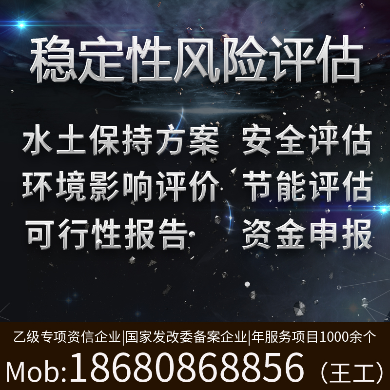 专业撰写 可行性研究报告、水土保持方案、节能评估报告交通影响评价、社会稳定风险评估 等专业材料!通过率99%以上